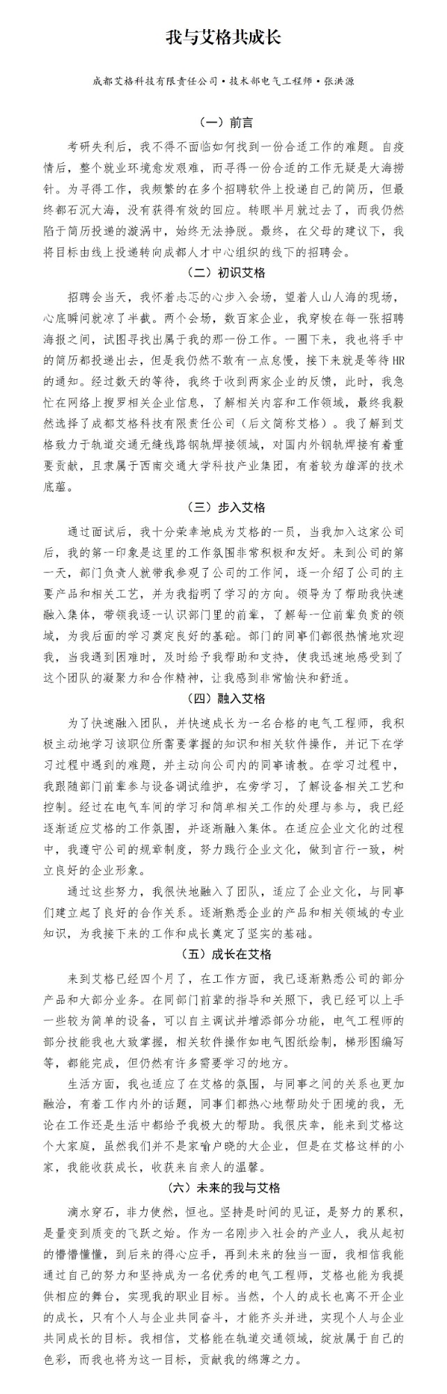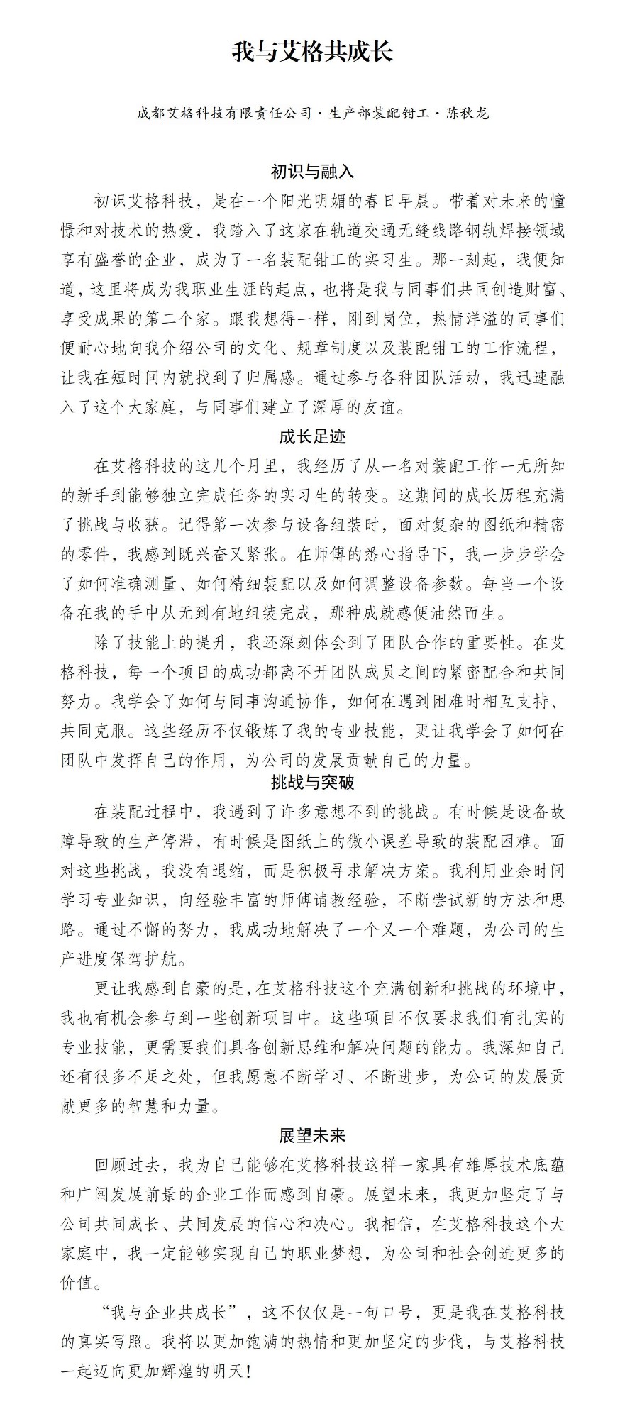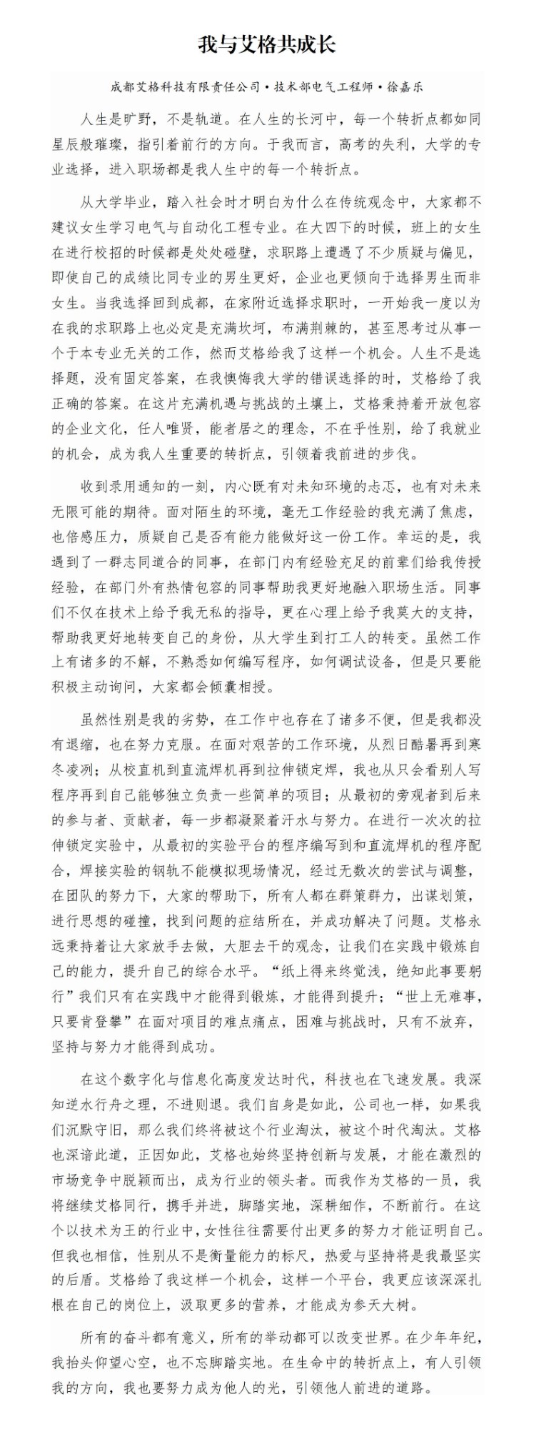 “我与艾格共成长”征文